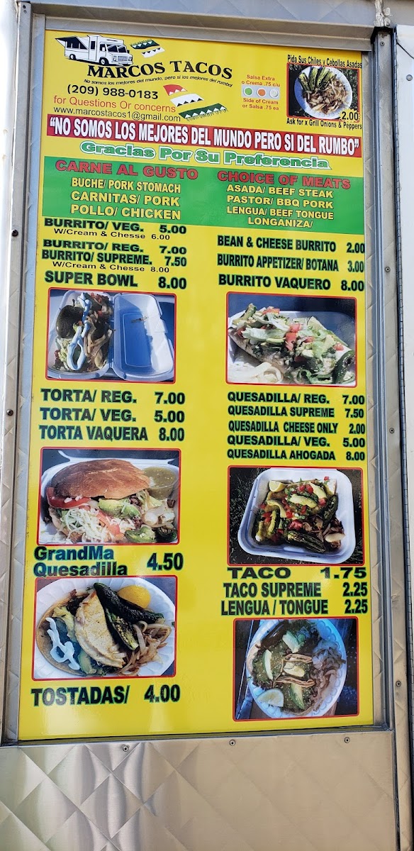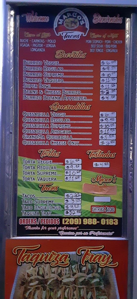 Marco's Tacos - Le Grand offers a vibrant menu that captures the essence of authentic Mexican street food. Nestled in Le Grand, CA, this taco restaurant is famed for its expertly crafted tacos, burritos, and quesadillas—each bursting with fresh, bold flavors. Highlights include the Quesadilla Supreme and the Burrito Vaquero, showcasing a perfect balance of savory meats and traditional spices. For veggie lovers, the Quesadilla Veggie and Burrito Veggie provide satisfying, flavorful options that don’t compromise on taste.